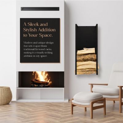 This contemporary firewood rack offers a modern and unique design that sets it apart from traditional firewood racks, making it a visually striking addition to any space.